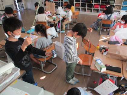 うごくおもちゃが次々とパワーアップされていきます。制作に時間をかけ、おもちゃもカラフルになってきました。今日は遊びのルールも考えました。