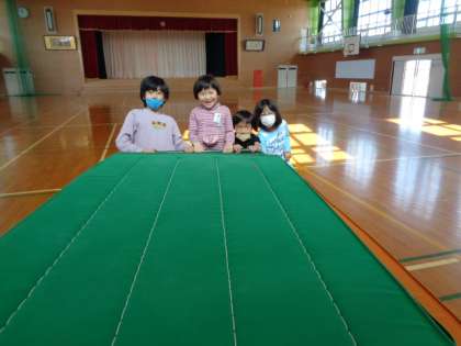 スポーツ教室の後片付けを、手伝ってくれる子供たちです。とっても助かりました。ありがとう。