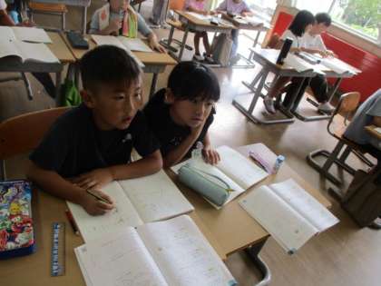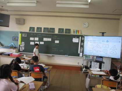【2年生】三角形?四角形? 公開日 2024/10/02 更新日 2024/10/02 2年生 算数科の学習では、色々な図形の中から、三角形と四角形の仲間分けをしました。へんが直線になっているか、ちょう点の数に注目してペアで話し合いながら進めていました。仲間分けをすると、へんが曲がっているものは三角形でも四角形でもないことが分かりました。