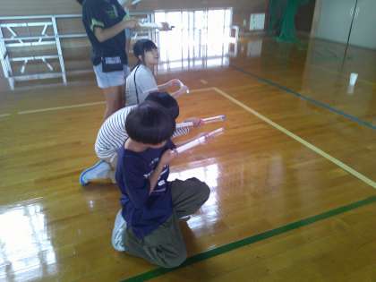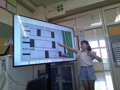 理科の学習で空気鉄砲を使って、とじこめた空気をおすとどうなるのか実験しました。その後、つつの中の空気の様子を自分なりに絵や言葉で表し、発表しました。