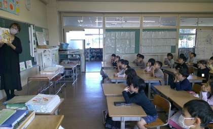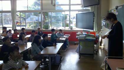 1年生 10月読み聞かせ 公開日 2024/10/11 更新日 2024/10/11 1年生 今日は、今の季節にぴったりのお月見の話を読んでいただきました。十三夜には、とてもきれいな月が見られるそうです。素敵なお話を紹介いただき、ありがとうございました。