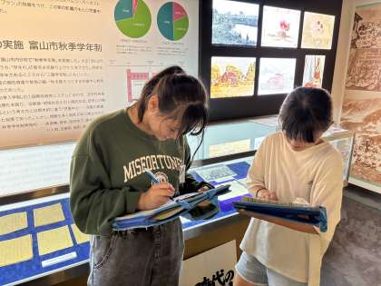 江戸時代の寺子屋や明治時代の遠足の様子、また富山県内すべての小学校の資料が置いてあるコーナーもありました。一つ一つの資料をじっくり見学して、身近な歴史の学習を深めていました。