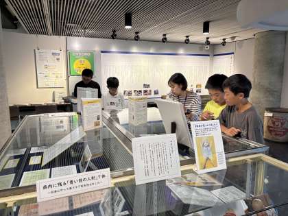 【6年生】富山県教育記念館を見学しました2 公開日 2024/10/17 更新日 2024/10/17 6年生 職員のみなさまにていねいに解説していただき、富山教育の歴史について学習を深めることができました。 県内すべての小学校の校歌を聞くことができるコーナーもありました。神保小学校の校歌を流しながら、口ずさむ6年生もいました。