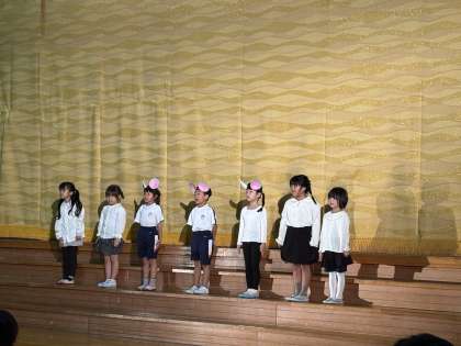 1年生の発表です。 劇「おむすび ころりん」です。 お客さんまで届く声の大きさ、間合いに気を付けてきました。