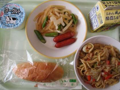 10月25日(金) 今日の給食 公開日 2024/10/25 更新日 2024/10/25 今日の給食 今日の献立は、減量コッペパン、あらびきウィンナー、大根サラダ、焼きそば、ヨーグルト、牛乳です。 焼きそばはボリューム満点でおいしいです!ウィンナーも子供たちに大人気でした。大根のワンちゃんがサラダの上にのっていました。ごちそうさまでした!