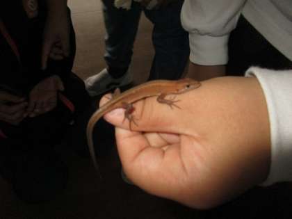 3年生 休み時間 公開日 2024/10/28 更新日 2024/10/28 3年生 外で元気に遊ぶことの多い3年生ですが、家で捕まえてきたカナヘビで楽しく遊んでいます。手に乗せたり「ベッド」に寝かせたりして、男子も女子も楽しそうです。