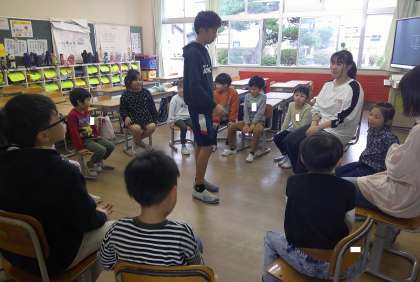 1年生 6年生さんとの交流 公開日 2024/10/29 更新日 2024/10/29 1年生 6年生が国語科の学習で話し合ったことをもとにして、1年生との交流活動をしてくれました。6年生にとっては、自分たちが話し合い考えたことを実践する場でしたが、1年生は6年生と一緒に遊べることが、ただただうれしく、終始笑顔で楽しそうでした。 6年生も、1年生の笑顔を見て、満足そうでした。楽し時間をありがとうございました。