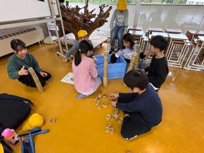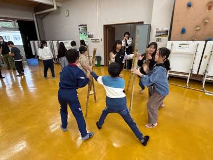 4年生 宿泊学習 バンブーチャレンジ 公開日 2024/10/30 更新日 2024/10/30 4年生 2日目は、森の木オリエンテーリングをしました。 早く終わったので、バンブーチャレンジという遊びをしています。