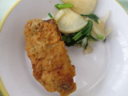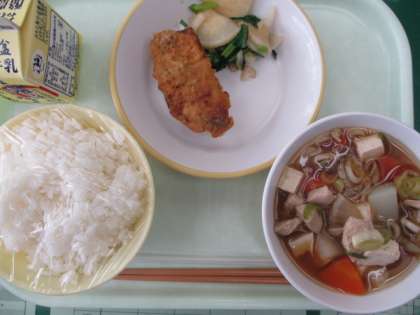 10月31日(木) 今日の給食 公開日 2024/10/31 更新日 2024/10/31 今日の給食 今日の献立は、ごはん、魚のえごま揚げ、かぶの色どり、根菜汁、牛乳です。 根菜汁は、大根やニンジン、ごぼうなどがやわらかく煮込まれていました。。ごま油の香りや味付けもとてもよいです! 魚のえごま揚げは、カリッと揚がっています。身は柔らかく食べやすくなっていました。 今日もおいしくいただきました!