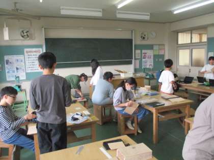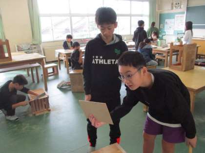 6年生は、木の板を加工して木工作品づくりに取り組んでいます。