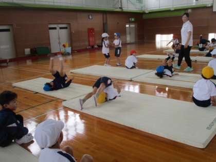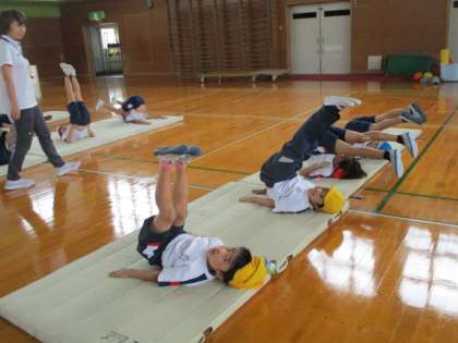 2組の様子です。柔軟体操やゆりかごに楽しそうに取り組んでいました。