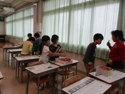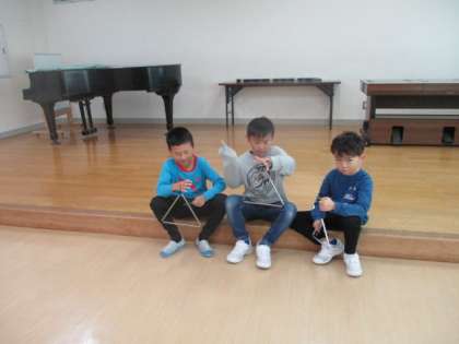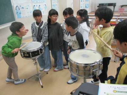 音楽科の学習では、いろいろな楽器でリズム打ちを楽しみました。
