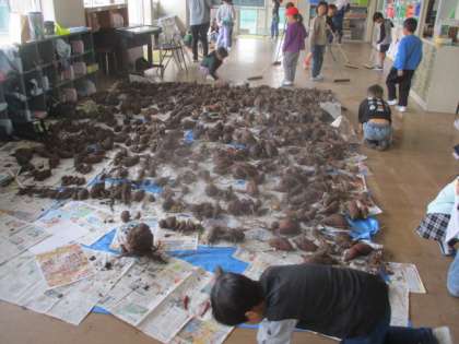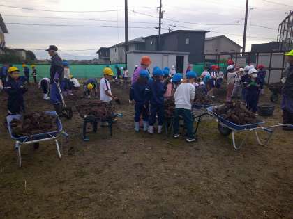 【2年生】いもほり教室2 公開日 2024/11/06 更新日 2024/11/06 2年生 今年は一輪車6台分のサツマイモが収穫できました。収穫後は、教室前に並べておきました。校舎に運ぶときに土で汚れてしまった床を見て、2年生の子供たちが掃除をし始めました。自分にできることを見付けて進んで取り組む姿はとても立派でした。