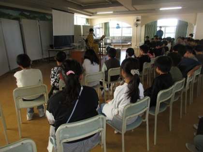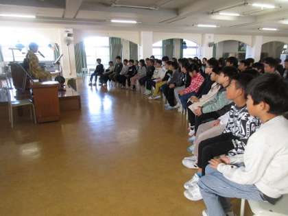 3限は、朗読家 鈴木優子先生による朗読「ごんぎつね」でした。ごんはどうなるのかな、兵十はいつ気づくのかなと、どきどきしながら聞きました。役によって声が変わったり、音楽が入ったりしたので、様子を想像したりしながら楽しく聞きました。、