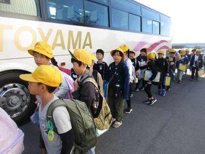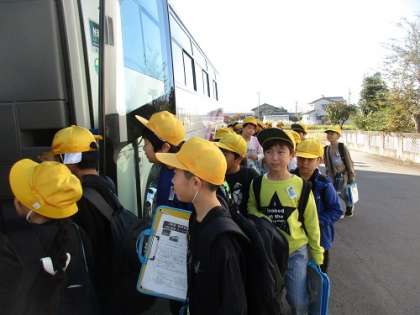 バスに乗って、校外学習に出かけました。天気もよく、やる気満々でバスに乗り込みました。