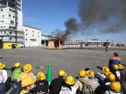 3年生 校外学習3 公開日 2024/11/13 更新日 2024/11/13 3年生 大学生の「かさいさん」が、いろいろと点火しっぱなしで出かけてしまうと言う設定の、消火訓練の説明を聞きました。「かさいさあん、忘れているよ」「かさいさあん、危ないよ」と、心配して呼びかけましたが、あっという間に、黒煙と炎に包まれました。