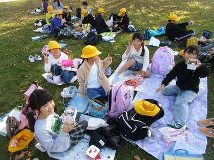 お昼ご飯は富山県総合運動公園で食べました。晴天の下、気持ちのよい秋風を浴びながらいただくお弁当はとてもおいしそうでした。