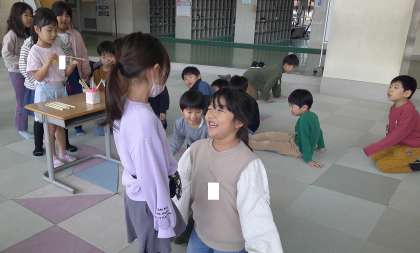 わりばしに書いてある名前を見て、その人に声をかけて連れてくるのですが、みんなわくわくどきどきしながら声をかけられるのを待っていました。そして、「一緒に遊ぼう」と言われると、とてもうれしそうで笑顔満開でした。