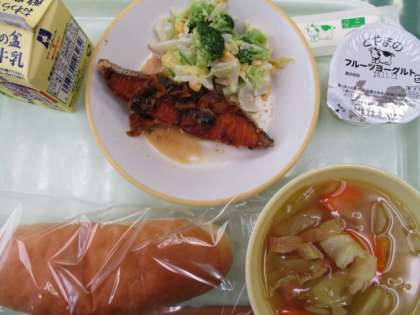 11月15日(金) 今日の給食 公開日 2024/11/15 更新日 2024/11/15 今日の給食 今日は、「学校給食とやまの日」です。 献立は、米粉コッペパン、魚の白ねぎソースかけ、白菜サラダ、富山野菜のカレースープ、ラフランスヨーグルト、牛乳です。 カレースープには、富山県産のれんこん等の野菜がたっぷり入っています。魚は、普段給食には出てこないシイラです。ヨーグルトは、富山県内の酪農家の搾りたて生乳を使っているそうです。 今日もおいしくいただきました!