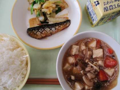 11月19日(火) 今日の給食 公開日 2024/11/19 更新日 2024/11/19 今日の給食 今日の献立は、ごはん、いわしの生姜味、白菜ひたし、豆腐ときのこのあんかけ煮、牛乳です。 豆腐ときのこのあんかけ煮は、気温の低い今日にもってこいの一品です。温かくて 体までほかほかしてきます。いわしは骨がないので安心して食べられます。 今日もおいしくいただきました!