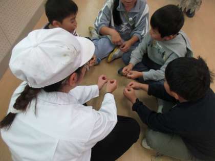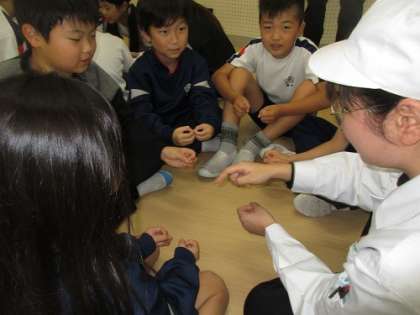 次は、3年生と「昔の遊び」の「ずいずいずっころばし」一緒に楽しみました。子供たちが元気よく歌うので、皆さんはにこにこと楽しそうでした。