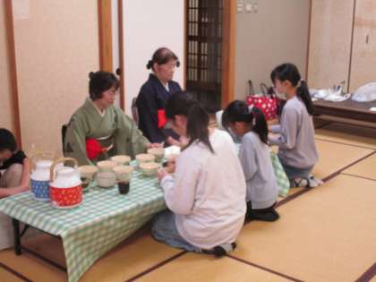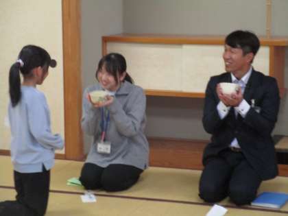 校長先生、教頭先生、担任の先生方、いつもお湯を準備してくださっている校務助手さんを招待して、お茶会を開きました。お菓子やお茶を運んだり、先生方に飲み方を教えたりと、1学期から練習してきた成果を発揮し、おいしいお茶をふるまうことができました。