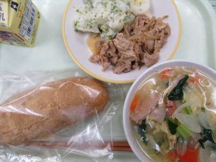 11月29日(金) 今日の給食 公開日 2024/11/29 更新日 2024/11/29 今日の給食 今日の献立は、揚げパン、豚肉の甘辛煮、こふきいも、たまごのふわふわスープ、牛乳です。 今日は年に1回の特別メニュー「揚げパン」が出ています。素揚げしたコッペパンにきなこをまぶした甘くておいしいパンです。 今日もおいしくいただきました!