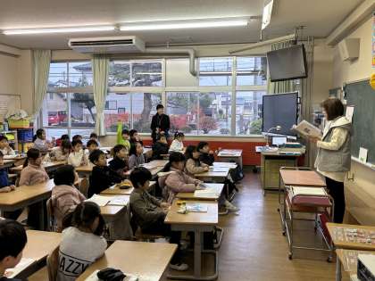 読み聞かせ(下学年) 公開日 2024/12/09 更新日 2024/12/09 学校行事 今日は、読み聞かせボランティア「ひだまりの会」のみなさまに、1年生から3年生の教室で読み聞かせをしていただいています。冬のこの時期にぴったりのお話を読んでいただき、心が温かくなりました。ありがとうございました!