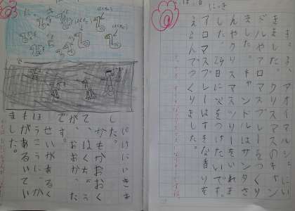 1年生 自主学習がんばっています20 公開日 2024/12/16 更新日 2024/12/16 1年生 今回の自学の日記では、クリスマスに関係のあることや、池でカモや白鳥を見たこと等が書かれていて、今の季節にぴったりだと感じました。