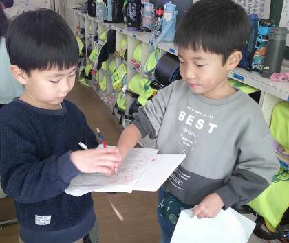 1年生 本はともだち 公開日 2024/12/23 更新日 2024/12/23 1年生 国語科「むかしばなしを よもう」で、図書室で選んだ昔話の本を友達に紹介する学習を行いました。自分の読んだ本の題名、登場人物、すきなところ・おもしろかったところをカードに書き、友達に伝えました。聞いた人は、その本を読んでみたいと思ったらカードにサインをしました。落ち着いて仲良く取り組む様子が見られ、嬉しく思いました。