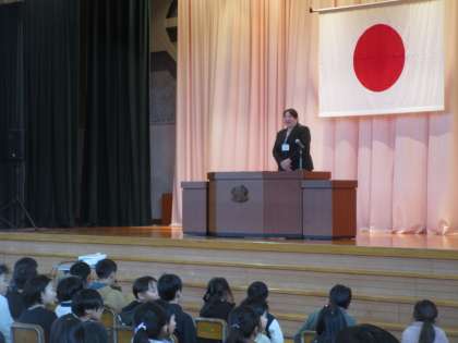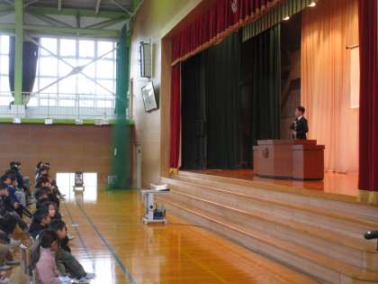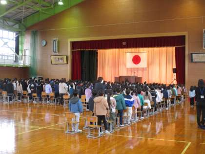 また、本日は終業式の後に、お世話になった先生の離任式が行われました。児童代表の言葉と花束で、感謝の気持ちを伝えました。