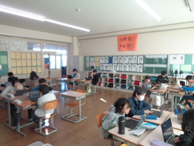 6年生を祝う会の集会名を決めるために、グループで名前の候補を出し合いました。