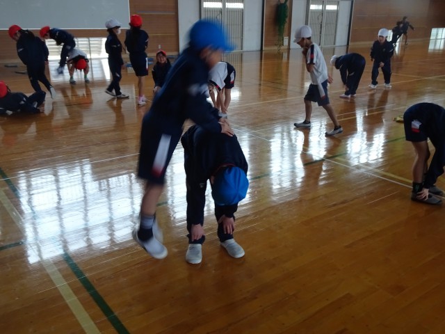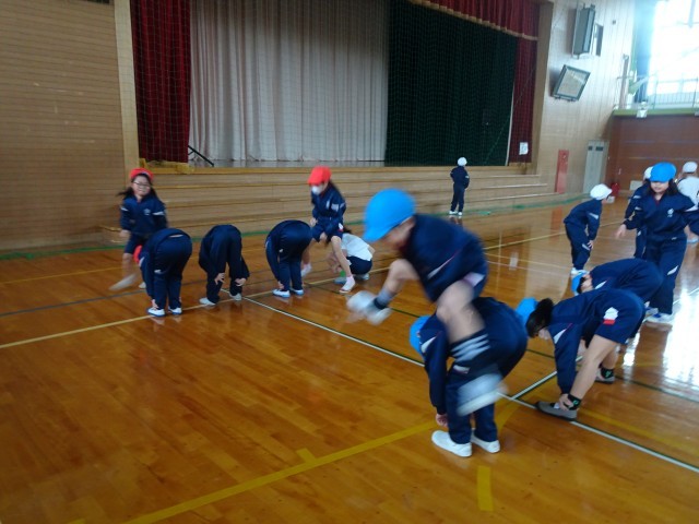まず2人でやり方を確認し、その後、色団ごとに並んで連続でできるか挑戦しました。