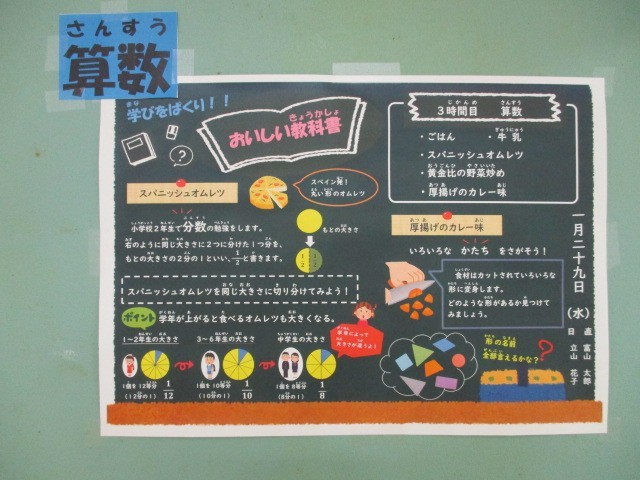 学校給食週間「学びをぱくり!おいしい教科書」の3日目は、算数科メニューです。