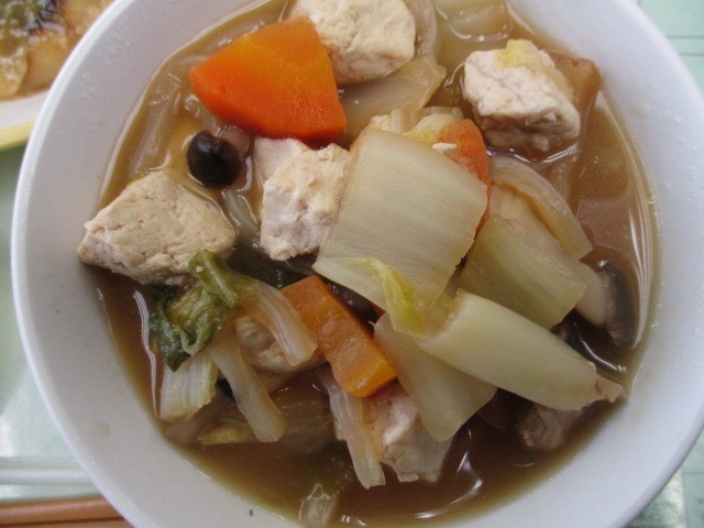 今日は立春ですが、献立は「節分献立」です。いり大豆和えは、大豆を細かくして野菜にあえてあります。食感があり野菜のシャキシャキ感と相まっておいしいです。ちゃんこ鍋は、具だくさんで食べ応えがありました。