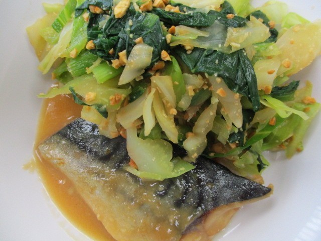 今日の献立は、ごはん、さばのみそ煮、いり大豆和え、ちゃんこ鍋、節分豆、牛乳です。