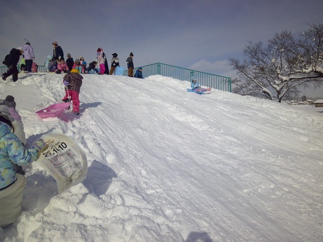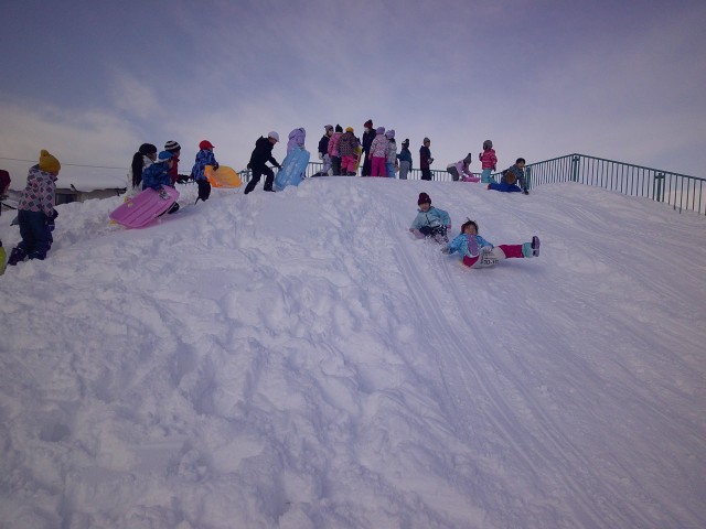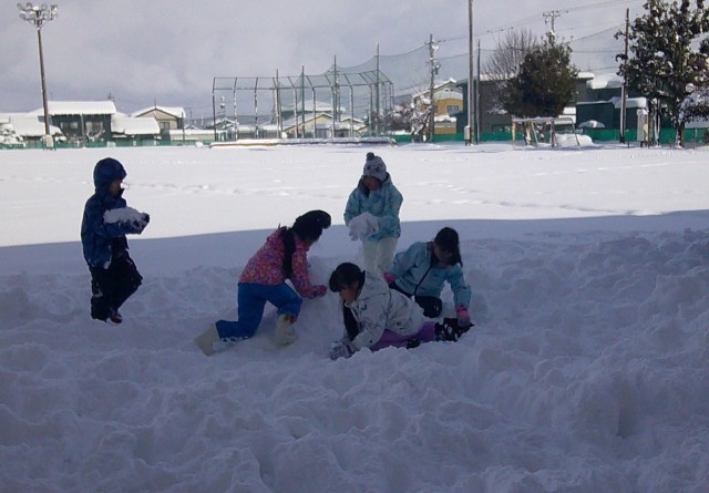 今日の雪遊びでは、「そり遊び」を行いました。そりの経験をしたことがなかった子も多かったようですが、何度も繰り返すうちに、いろいろな思いを抱いたようです。「さいしょは、うまくできなくてくやしかったけど、人のを見てじょうずになった」「そりをじょうずにするためには、足を上げることがだいじだと思いました」「袋やそりでやったら、そりが転びにくくて、袋が滑りやすくて、両方よかったです」「そりが怖かったです。でも、できるようになってきました」など、様々な感想が見られました。学習後の休み時間には、かまくら作りや雪投げをしている子もいて、雪を十分堪能できたようです。