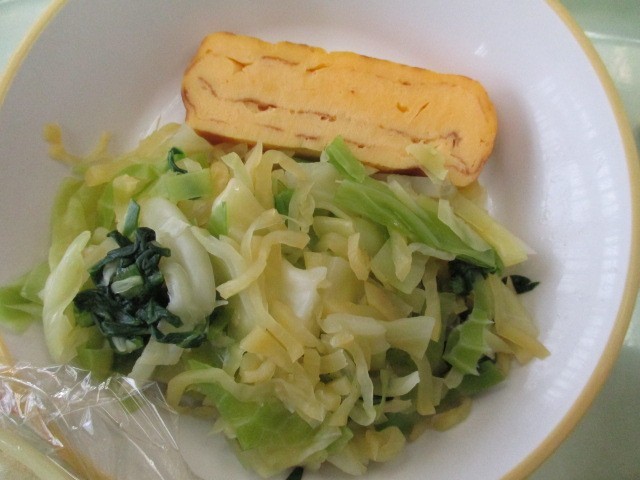 あわせ和えは、現在高価なキャベツとたくあんが丁度よい塩加減になっていて、ごはんに合います。
