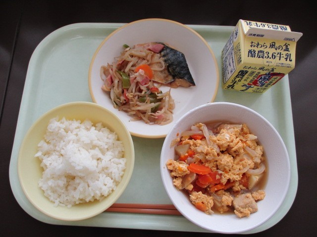 4月24日(木)の給食 公開日 2025/04/24 更新日 2025/04/24 今日の給食 今日の献立は、ごはん、さばのみそ煮、野菜ソテー、卵とじ、牛乳です。 卵とじの高野豆腐には、だしのうまみがしみこんでいました。よく噛んでおいしくいただきました。
