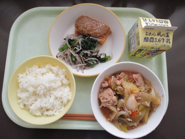 5月7日(水)の給食 公開日 2025/05/07 更新日 2025/05/07 今日の給食 今日の献立は、ごはん、揚げ出し豆腐のごまだれかけ、ゆかり和え、すきやき、牛乳です。 ゆかり和えのしその香りが、野菜の味を引き立たせています。ごまたれで風味が増した揚げ出し豆腐も、おいしくいただきました。
