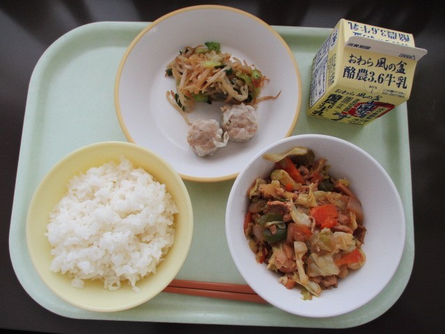 5月9日(金)の給食 公開日 2025/05/09 更新日 2025/05/09 今日の給食 今日の献立は、ごはん、肉シューマイ、香味和え、回鍋肉、牛乳です。 回鍋肉には、キャベツを中心に野菜がたっぷり入っていました。子供たちは、栄養バランスが整った給食をもりもり食べ、1週間後の運動会に向けて練習を頑張っています。