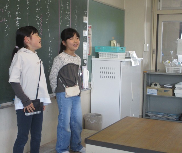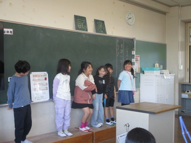 【2年生】国語 ふきのとう 公開日 2025/05/12 更新日 2025/05/09 2年生 国語科「ふきのとう」の学習では、様子が伝わるような音読の仕方を考えて、グループ毎に発表しました。声の大小や振り付け等、それぞれが工夫して音読することができました。