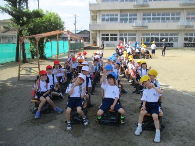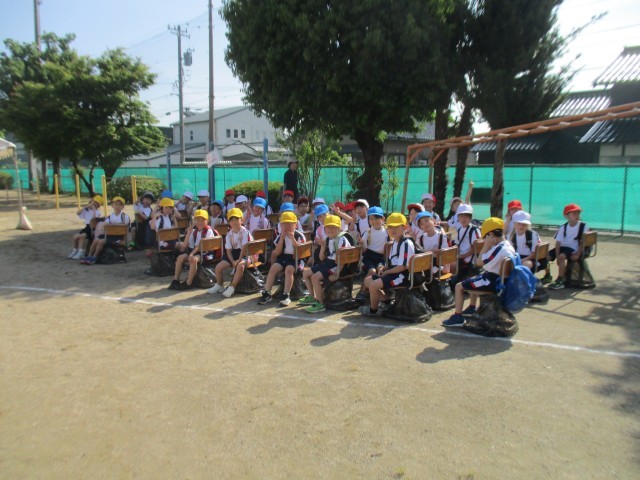 椅子をもって、外履きに履き替え、グラウンドに出て、色団ごとに並ぶ。