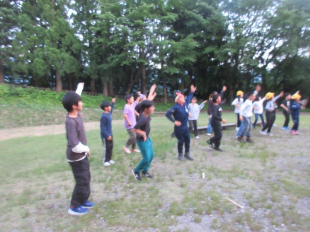 キャンプファイヤーで、それぞれのクラスの出し物をしました。