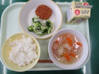 今日の献立は、ごはん、にしんのみぞれ煮、よごし、じゃがいものそぼろ煮、牛乳です...