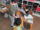 朝は学校の用務員さんに「とのさま1年生」を、図書の時間には司書の先生に「はっぱの...