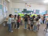 音楽の時間にじゃんけん列車をしました。 どんどん列が長くなっていき、喜ぶ様子が見...