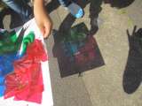 ひかりのプレゼントがいよいよ完成。太陽の光を作品に当てて地面にうつる様子を楽しん...