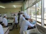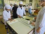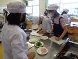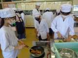 炒める手順では、固い野菜から順番に炒めることを学び、実践しました。班によっては...