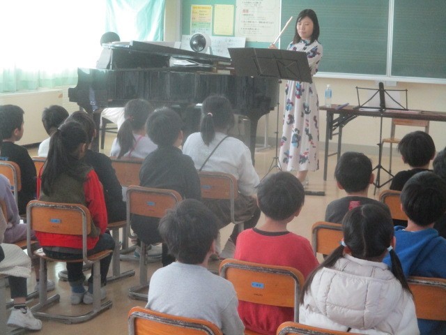 1月21日(水)、1・2年生は、音楽鑑賞会を行いました。 フルートとピアノの奏...